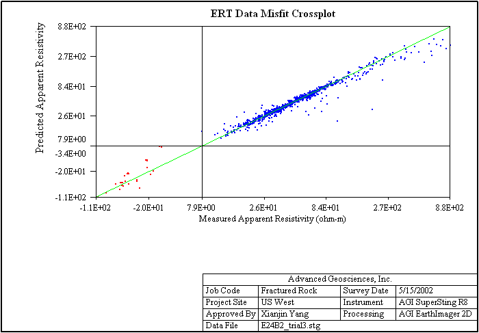 Data misfit scatter plot and cross-plot.